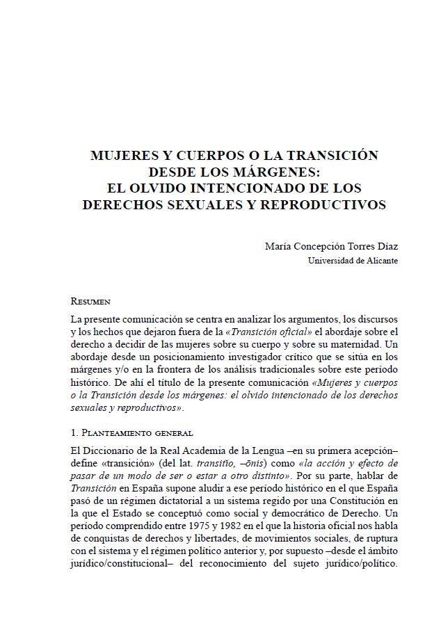 Artículo publicado en I Coloquio Internacional Haciendo Historia: Género y Transición Política «Transiciones en Marcha»: Universidad de Alicante, 28 y 29 de mayo de 2014 / Carmen Mañas Viejo, Mar Esquembre Cerdá, Mónica Moreno Seco y Nieves Montesinos Sánchez (Eds.). Alicante: Universidad de Alicante, 2015. ISBN 978-84-9717-348-3, pp. 98-111