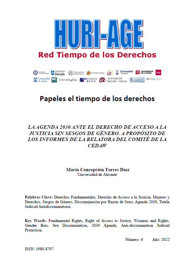 Torres-Díaz, María Concepción (2022)La Agenda 2030 ante el Derecho de Acceso a la Justicia sin sesgos de género. A propósito de los informes de la relatora del Comité de la CEDAW. En Papeles El Tiempo de los Derechos, nº 6, Huri-Age Consolider Ingenio. ISSN: 1989-8797. Versión editor aquí: https://redtiempodelosderechos.files.wordpress.com/2022/10/agenda-2030-6-22.pdf. Más información: https://redtiempodelosderechos.com/agenda/papeles-el-tiempo-de-los-derechos/. En el repositorio académico RUA aquí: http://rua.ua.es/dspace/handle/10045/128873.