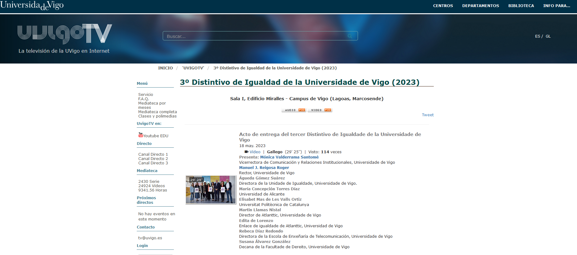 El pasado 11 de mayo tuvo lugar el Acto de entrega del tercer Distintivo de Igualdade de la Universidade de Vigo. La profesora y abogada, Dra. Concepción Torres, participó en calidad de representante del Tribunal evaluador de esta tercera edición. Vídeo del acto de entrega en los siguientes enlaces: