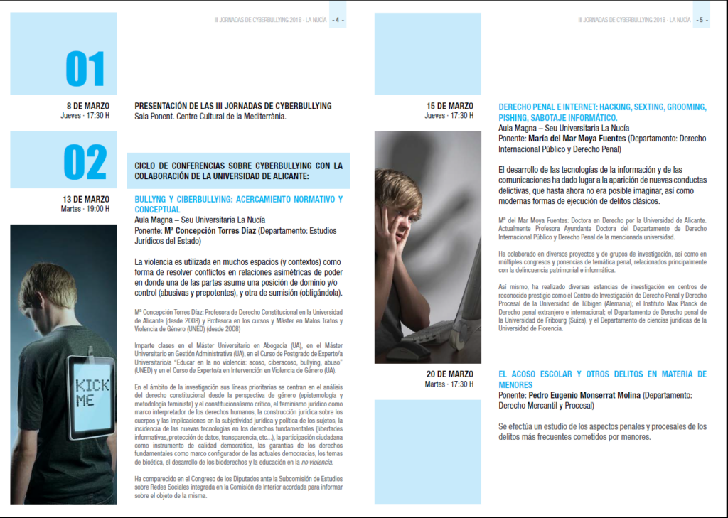 Información en pdf aquí: https://web.ua.es/es/seus/lanucia/documentos/cursos-y-jornadas/2017-2018/programa-cyberbullying.pdf