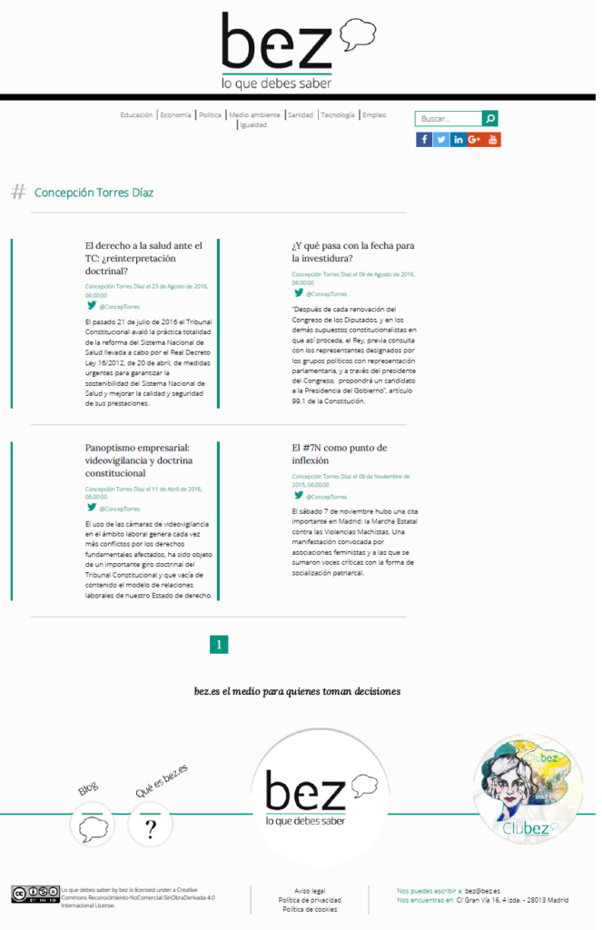 La profesora Dra. Torres Díaz recuerda su paso por el Diario digital Bez.es compartiendo su perfil de autora en 2016 (hace 10 años).