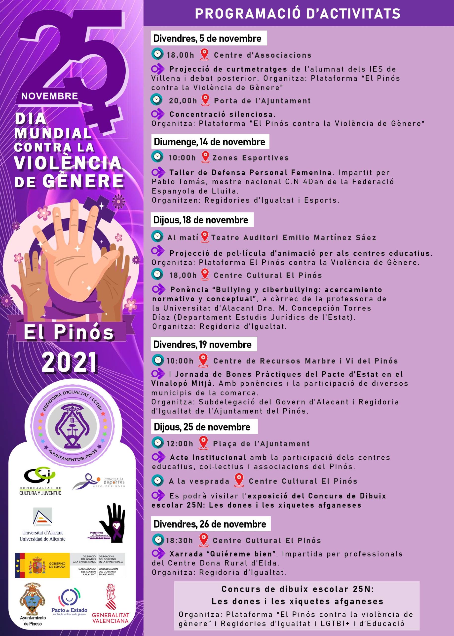 (191) Ponencia invitada en el marco de colaboración de extensión universitaria UA: «Acoso escolar y ciberacoso escolar: aspectos normativos, doctrinales y estrategias para su identificación y abordaje», en Jornadas enmarcadas en las actividades del 25N, Pinoso (Alicante), 18 de noviembre 2021. Cartel de la jornada: https://www.juristconcep.com/wp-content/uploads/2021/10/TALLER-BULLYING-PINOSO-18-NOV.png. Programa completo 25N 2021: https://www.juristconcep.com/wp-content/uploads/2021/10/cartell-generic-25N-2021-PINOSO.jpg. En prensa: https://mcmpinoso.com/destacados/bullying-y-ciberbullying-una-triste-realidad-que-la-sociedad-enfrenta-todos-los-dias/?fbclid=IwAR2etd-lcHxenTSFYZVxc-YFUitiy7vCKn9YoZ-mNlF3K_cIaz6H-V8VOtw.