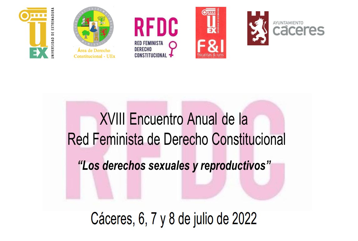 (206) Ponencia «Los retos (límites) del discurso jurídico ante la constitucionalización de los derechos sexuales y derechos reproductivos: un debate permanente», en XVIII Encuentro de la Red Feminista de Derecho Constitucional, Universidad de Extremadura (Cáceres), 6-8 de julio 2022. Programa: https://www.juristconcep.com/wp-content/uploads/2022/06/Programa-XVIII-Encuentro-2022-1.pdf. Cartel del XVIII Encuentro aquí: https://www.juristconcep.com/wp-content/uploads/2022/06/Cartel-XVIII-Encuentro-RFDC.jpg. Más información: http://www.juntaex.es/comunicacion/noticia?idPub=37216#.YsizRv1ByM-