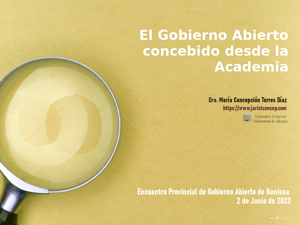 (204) Ponencia en la Mesa Redonda «El Gobierno Abierto concebido desde la Academia«, en el marco del Encuentro Provincial de Gobierno Abierto. Organizado por el Ayuntamiento Benissa y EQUÀLITAT, participació i igualtat (Alicante), 2 de junio 2022. Programa: https://www.juristconcep.com/wp-content/uploads/2022/05/PROGRAMA-Benissa-Trobada-Provincial-Govern-Obert-A3.pdf. Cartel aquí: https://www.juristconcep.com/wp-content/uploads/2022/04/Cartel-Trobada-Benissa-ogov-2.png. Más información: https://www.equalitat.es/trobada-provincial-de-govern-obert-de-benissa-2022/. Presentación: https://www.juristconcep.com/wp-content/uploads/2022/06/Gobierno-Abierto-2022-Prof.a-Concepcion-Torres.png. Vídeo de la Jornada: https://www.youtube.com/watch?v=_BBiCrzSDPU. Más información aquí: https://www.equalitat.es/cronica-de-la-trobada-provincial-de-govern-obert-de-benissa/.