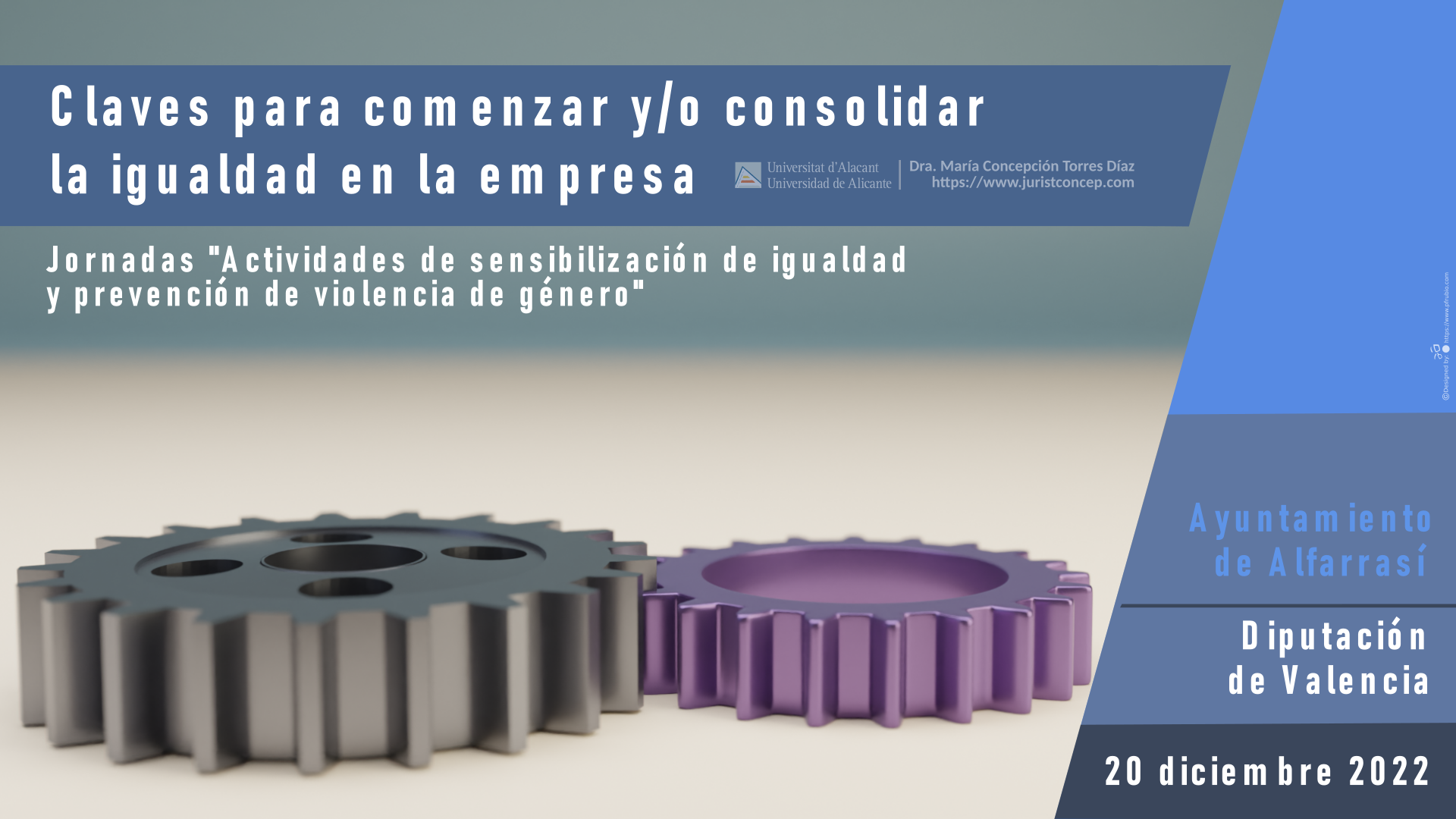 (224) Ponencia en la acción formativa online dirigida al tejido empresarial «Claves para comenzar y/o consolidar la igualdad en la empresa», en el marco de las «Actividades de sensibilización en materia de igualdad y prevención de la violencia de género», subvencionadas por la Diputación de Valencia e impulsadas por el Ayuntamiento de Alfarrasí, con la colaboración de EQUÀLITAT, participació i igualtat, 23 de diciembre de 2022. Presentación-ponencia: https://www.juristconcep.com/wp-content/uploads/2022/12/Portada-TORRES-DIAZ.png. Cartel: https://www.juristconcep.com/wp-content/uploads/2023/01/Cartel-ponencia-igualdad-empresarial.png. Referencia en la web de Equalitat aquí: http://www.equalitat.es/dialegs-obert-dalfarrasi-concepcion-torres-universitat-dalacant/?fbclid=IwAR2wtjs92j6U4RUDGowtm7ZotjuiUAs7JPEcBZ5UwBeIWr8vq-oSTHfZiq0.