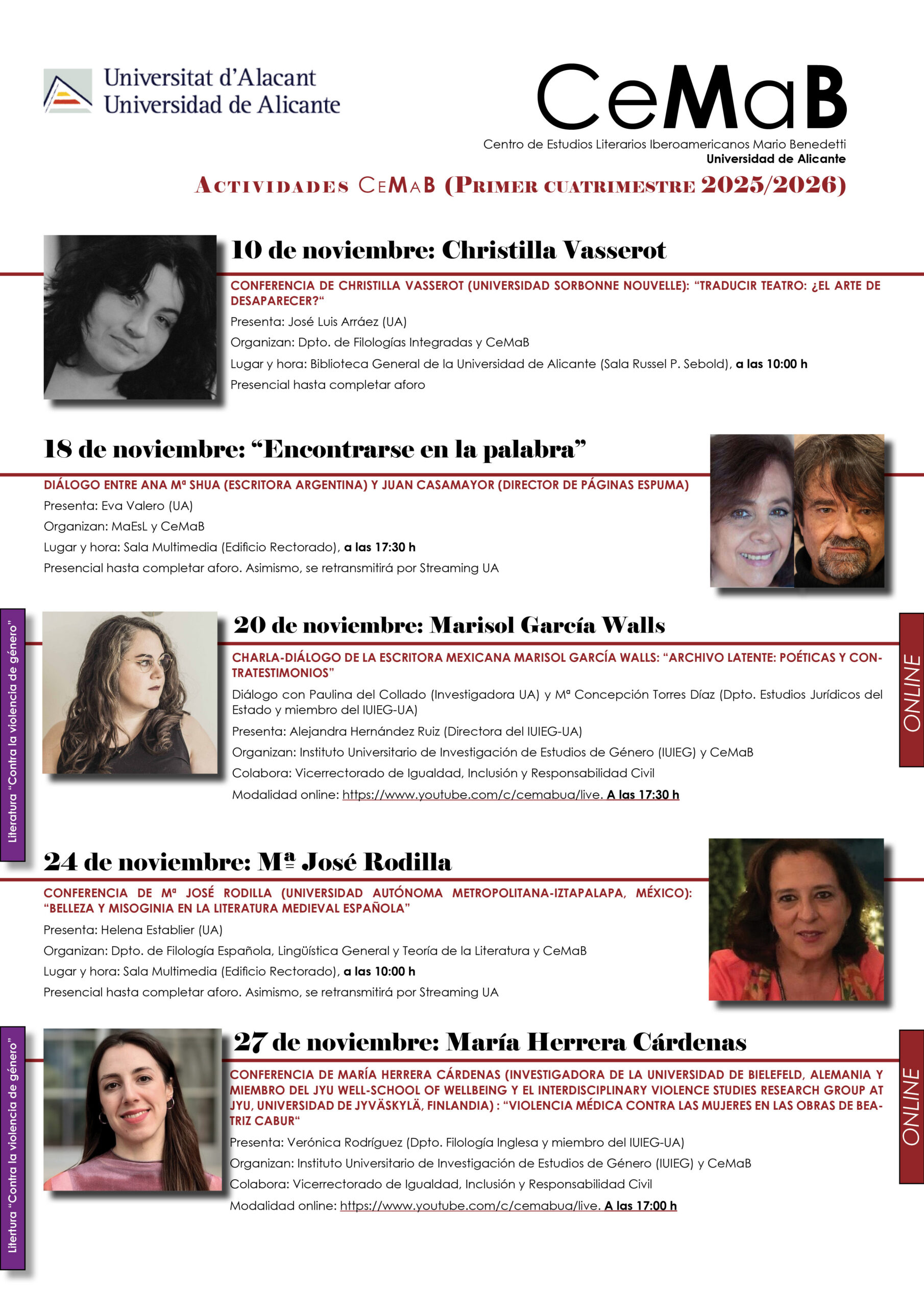 https://web.ua.es/va/actualidad-universitaria/2025/setembre2025/15-21/el-cemab-programa-25-activitats-literaries-per-al-primer-trimestre-del-nou-curs.html. En Youtube: https://www.youtube.com/watch?v=iLZMu6eK0X4