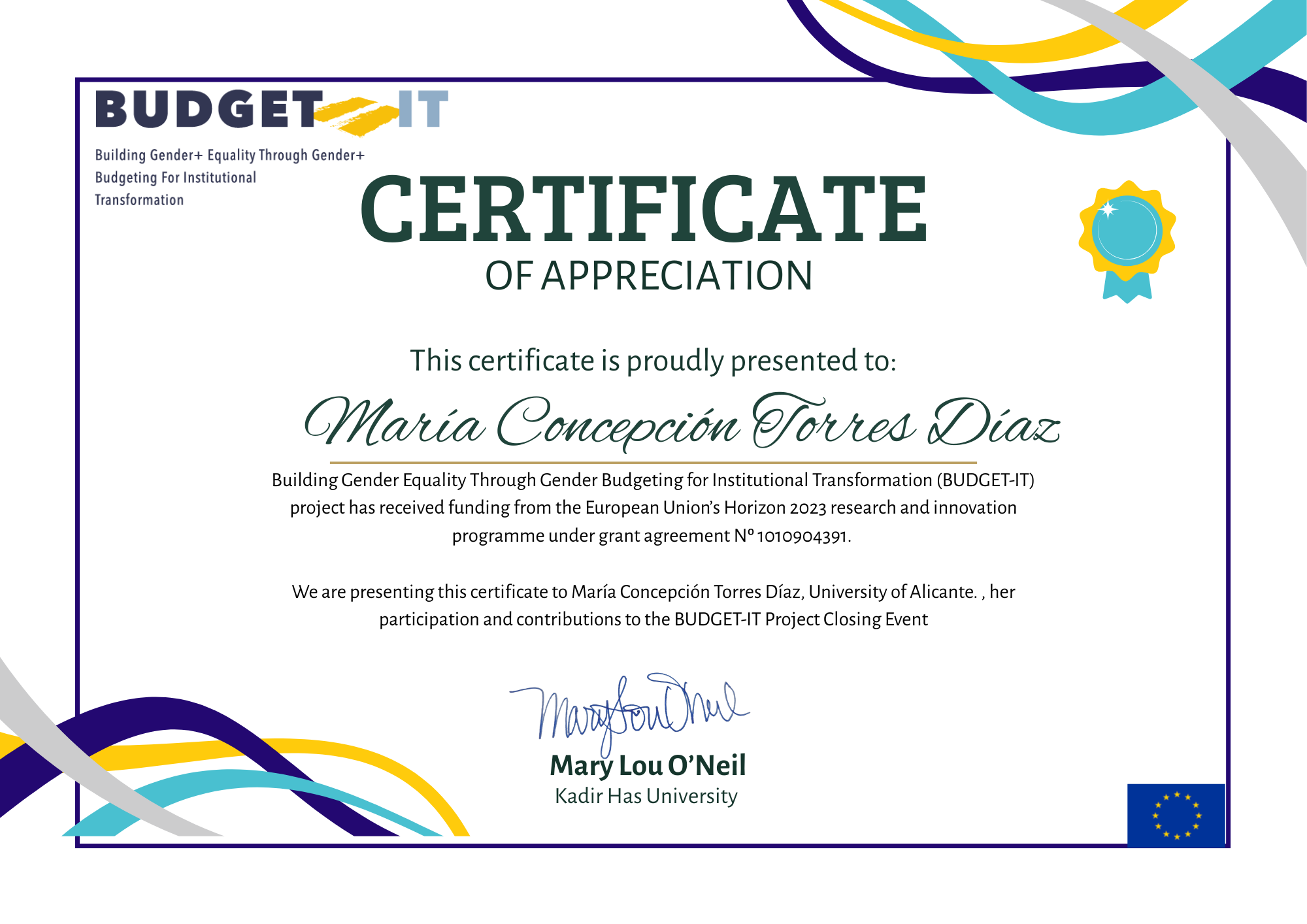 (257) Participación en el marco CONSORTIUM MEETING AGENDA del Proyecto Europeo Budget it en Kadir Has University. Estambul (Turquía). Fecha: 2-3 de octubre de 2025. Programa: https://www.juristconcep.com/wp-content/uploads/2025/09/CONSORTIUM-MEETING-AGENDA-_Istanbul_First_Draft.pdf. Certificado de participación: https://www.juristconcep.com/wp-content/uploads/2025/10/Green-Achievement-Certificate-TORRES-DIAZ-M.C.png. Web del proyecto europeo: https://budget-it.eu/ Información adicional sobre el Proyecto Europeo: https://observatorio-cientifico.ua.es/proyectos/1036744/detalle