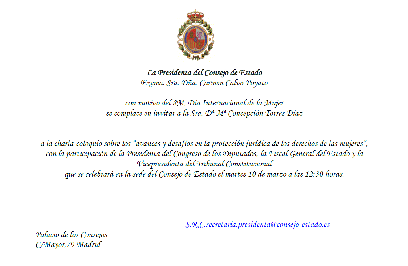 (199) Participación en Mesa Redonda «Jornada sobre la Mujer con motivo del #8M», Facultad de Sociología de la Universidad de Alicante, 7 de marzo de 2022. Programa: https://www.juristconcep.com/wp-content/uploads/2022/03/Cartel-Jornada-Dona.pdf. Más información aquí: https://economicas.ua.es/es/actividades-y-eventos/jornadas-de-la-mujer.html